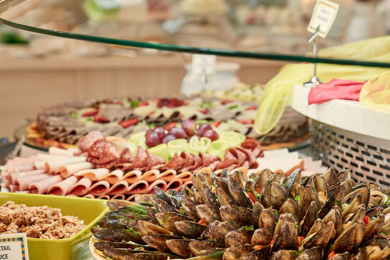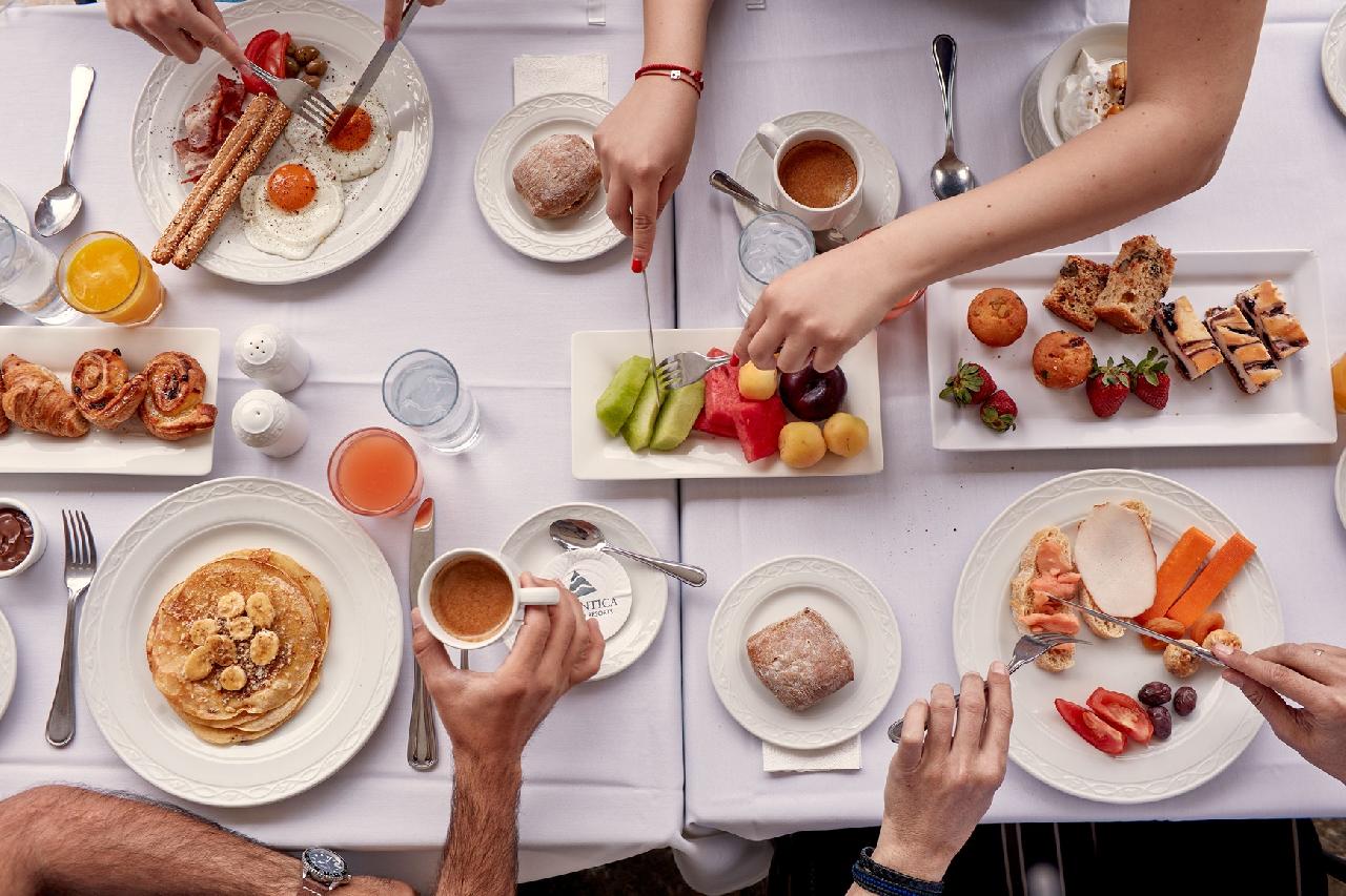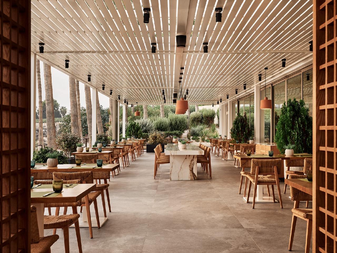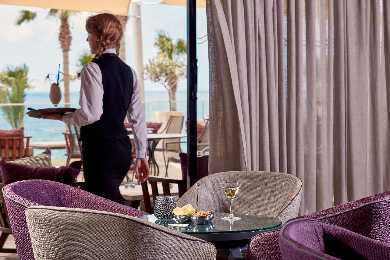 Étkezés: félpanzió, bőséges svédasztalos reggelivel (friss pékáruk, gyümölcsök, hideg és meleg ételek, tojásételek, sajtok, felvágottak, reggeli italok és gyümölcslevek) és büfé vacsorával. A vacsorára a helyi ciprusi specialitásoktól kezdve a mediterrán fogásokon át nemzetközi kedvenceket is felszolgálhatnak. Különleges étkezési igényekre, mint vegetáriánus vagy gluténmentes ételek, szintén rendelkezésre állnak. Felár ellenében all inclusive ellátás foglalható, benne: reggeli, ebéd és vacsora, széles ételválasztékkal, melyek között megtalálhatóak helyi ciprusi és mediterrán ételek, friss tengeri fogások és nemzetközi ínyencségek. Az ebédet a medence melletti étteremben szolgálják fel, ahol könnyű és friss ételek, mint például saláták, grill ételek és tésztafélék kerülnek az asztalra. Napközben frissítő snackeket kínálnak, mint például könnyű harapnivalók, fagylaltok, sütemények és gyümölcsök, amelyek a medence mellett vagy a bárokban érhetők el. Az all inclusive ellátás része a korlátlan alkoholos és alkoholmentes italok fogyasztása 10–24 óra között. A helyi borok, sörök, koktélok és frissítők egész nap rendelkezésre állnak. A bárban este koktélok, frissítő limonádék és különféle italok várják a vendégeket (az italválaszték a szállodai itallapon található „AL” jelzéssel).