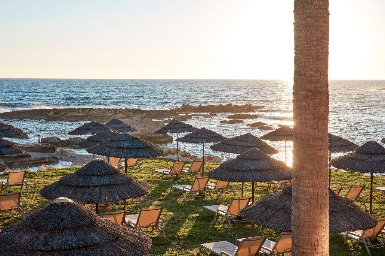 Fekvése: Nagyszerű tengerparti fekvésű, romantikus hangulatú 204 szobás, csak felnőtt (16 év feletti) vendégeket fogadó szálloda, Paphos üdülőövezeti részén, közvetlenül a tengerparton található. Ideális választás pároknak, akik romantikus és nyugodt környezetben szeretnék élvezni a hely varázsát. A szálloda egy csendes, privát öbölben található, ahol a természet közelsége és a gyönyörű táj nyújt pihenést a nyüzsgéstől távol. A szálloda privát strandja a (kis öböl, napozórész, homokos part, a tengerbe lépve köves, kavicsos - gumicipő viselése javasolt) a kerten keresztül érhető el. Paphos városközpontja és a kikötő 7 km-re fekszik. A térség legszebb strandjai a Coral Bay-en kb. 6 km-re (taxival ~15 euró) találhatók. Buszmegálló a szálloda közelében (a buszjegy ára a városközpontba vagy a Coral Bay-re egyaránt kb. 2,50 euró). Az Atlantica Golden Beach Hotel tökéletes választás, ha romantikus tengerparti nyaralásra vágyik, ahol minden a kényelmet szolgálja. Paphos történelmi szépsége, a szálloda modern luxusa és a csodás tengerparti fekvés garantálja az emlékezetes kikapcsolódást, foglaljon most! „Atlantica Golden Beach – Ahol a nyugalom találkozik a tengerrel, és a szerelem virágzik a naplementében!”
